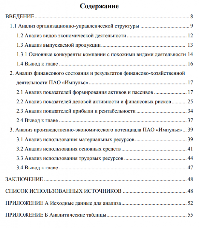 Курсовая работа: Организационно-экономический анализ ПАО Импульс