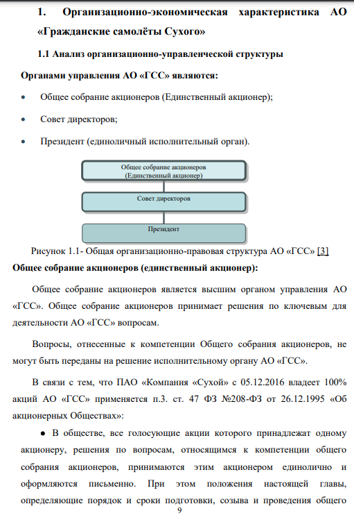 Часть 1. Организационно-управленческая. Выполнить анализ организационноуправленческой структуры, видов экономической деятельности и видов выпускаемой продукции АО «Гражданские самолёты Сухого».