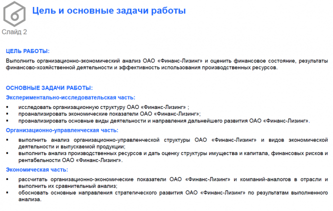 Курсовая работа: Организационно-экономический анализ ОАО "Финанс-Лизинг" (презентация)