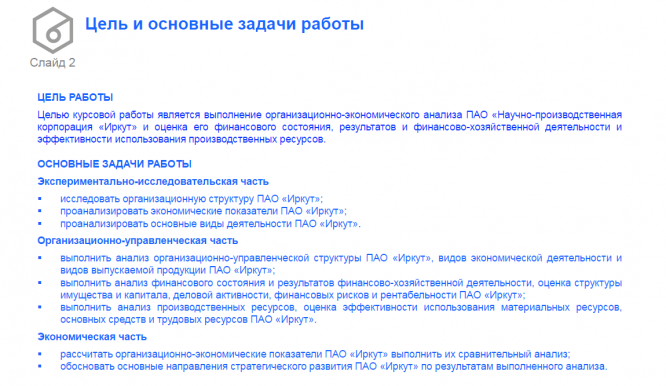 Курсовая работа: Организационно-экономический анализ ПАО "Научно-производственная корпорация "Иркут" (презентация)