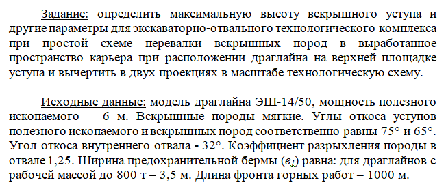 Для студентов НИТУ «МИСиС» по предмету Технологии добычи полезных ископаемыхРасчет параметров экскаваторно-отвального технологического комплекса при простой бестранспортной схеме перевалки вскрышных пород в выработанное прострРасчет параметров экскаваторно-отвального технологического комплекса при простой бестранспортной схеме перевалки вскрышных пород в выработанное простр
