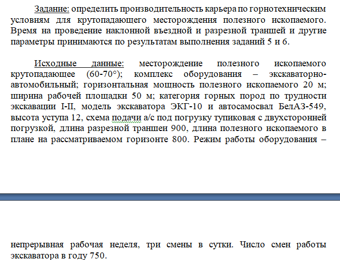 Для студентов НИТУ «МИСиС» по предмету Технологии добычи полезных ископаемыхРасчет производительности карьера по горнотехническим условиям для крутопадающих месторождений полезных ископаемыхРасчет производительности карьера по горнотехническим условиям для крутопадающих месторождений полезных ископаемых