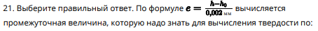 21. Выберите правильный ответ. По формуле вычисляется промежуточная величина, которую надо знать для вычисления твердости по: