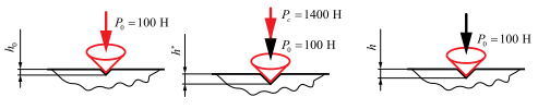 30. Какой из отпечатков в поверхности испытуемого на твердость материала какому методу испытания твердости соответствует? (Поставьте отпечатки в соответствие методам твердости).