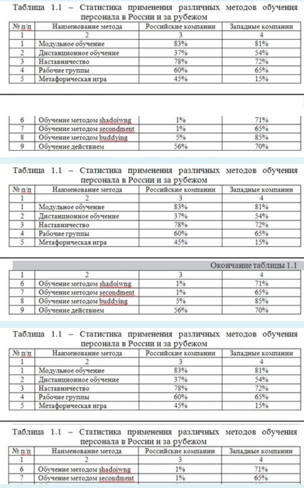 Как оформляются графы таблицы, если она занимает больше одной страницы? Выберите изображение, на котором верно оформлена таблица, занимающая больше одной страницы.