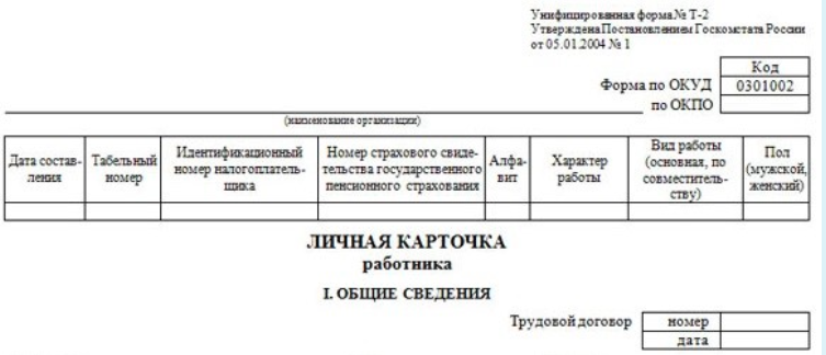 Личная карточка работника