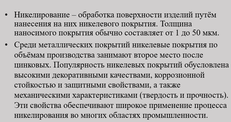 Для студентов МГТУ им. Н.Э.Баумана по предмету Технология и оборудование нанесения покрытий (МТ-3)НикелированиеНикелирование