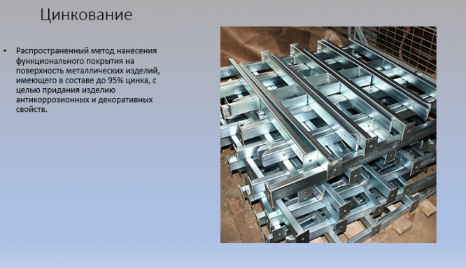 Цинковые покрытия применяют для защиты от коррозии стальных деталей [7]: