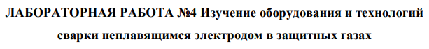 Лабораторная работа: Изучение оборудования и технологии сварки неплавящимся электродом в защитных газах