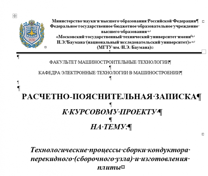 Для студентов МГТУ им. Н.Э.Баумана по предмету Технология электронного машиностроения (МТ-11)Курсовой проектКурсовой проект