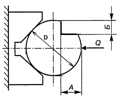 Заготовка диаметром D = 26h9 базируется в соответствие с приведенной схемой. Угол призмы – 90°. Рассчитать погрешность базирования при фрезеровании уступа с размером А = 6 мм.