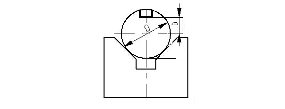 Заготовка диаметром D = 22h9 базируется в соответствие с приведенной схемой. Угол призмы – 90°. Рассчитать погрешность базирования при фрезеровании паза с размером b = 9 мм.