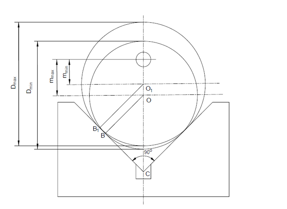 Заготовка диаметром D = 48h9 базируется в соответствие с приведенной схемой. Угол призмы – 90°. Рассчитать погрешность базирования при сверлении отверстия с размером m = 15 мм.