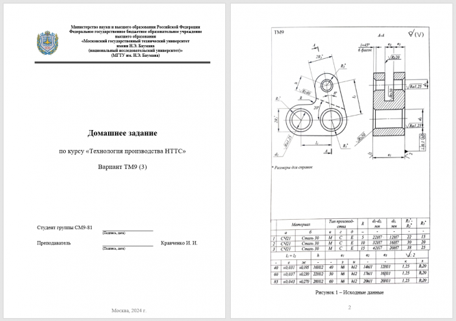Для студентов МГТУ им. Н.Э.Баумана по предмету Технология производства наземных транспортно-технологических средствЗадание ТМ9 - Технология производства НТТСЗадание ТМ9 - Технология производства НТТС