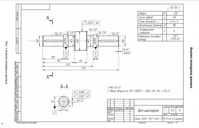Для студентов МГТУ им. Н.Э.Баумана по предмету Технология энергомашиностроенияДомашнее задание №2 - Вал-шестерняДомашнее задание №2 - Вал-шестерня