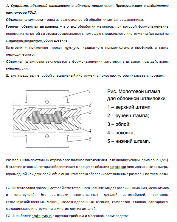 1. Сущность объемной штамповки и область применения. Преимущества и недостатки технологии ГОШ.