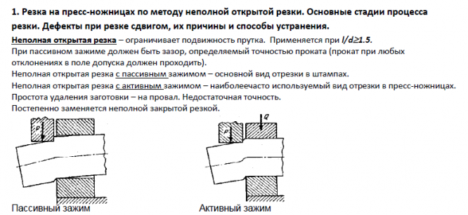 - Резка на пресс-ножницах по методу неполной открытой резки. Основные стадии процессарезки. Дефекты при резке сдвигом, их причины и способы устранения.
