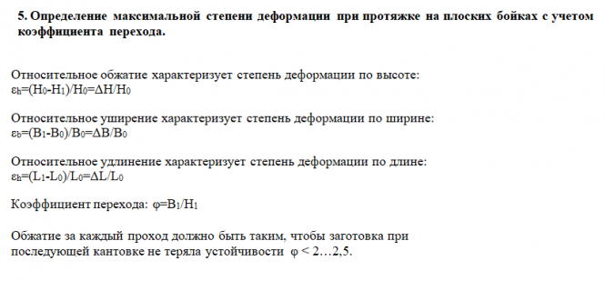 5. Определение максимальной степени деформации при протяжке на плоских бойках с учетом коэффициента перехода.
