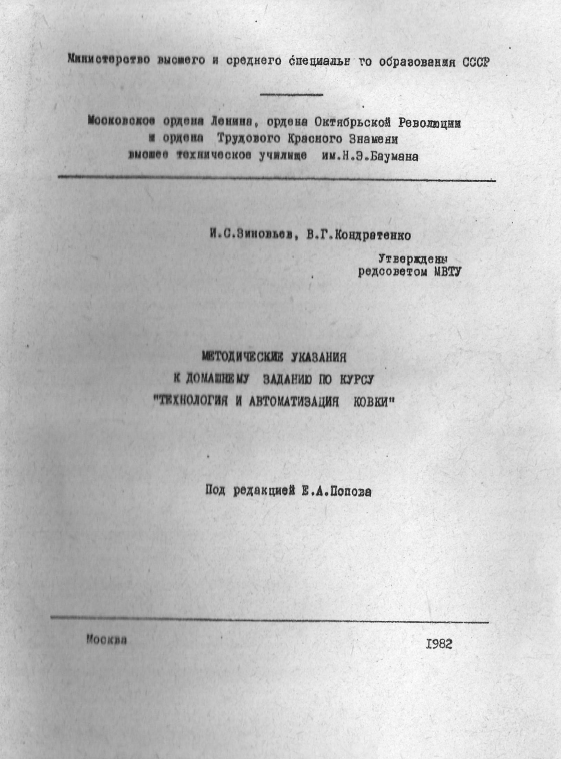 Для студентов МГТУ им. Н.Э.Баумана по предмету Технология и автоматизация ковки (ТАК) (МТ-6)МУ к ДЗ по курсу "Технология и автоматизация ковки"МУ к ДЗ по курсу "Технология и автоматизация ковки"