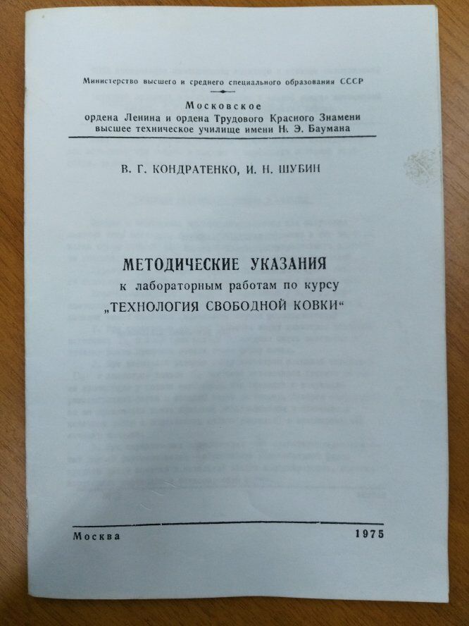 Для студентов МГТУ им. Н.Э.Баумана по предмету Технология и автоматизация ковки (ТАК) (МТ-6)В.Г. Кондратенко, И.Н. Шубин - Методические указания к лабораторным работам по курсу "Технология свободной ковки"В.Г. Кондратенко, И.Н. Шубин - Методические указания к лабораторным работам по курсу "Технология свободной ковки" 2022-10-06СтудИзба