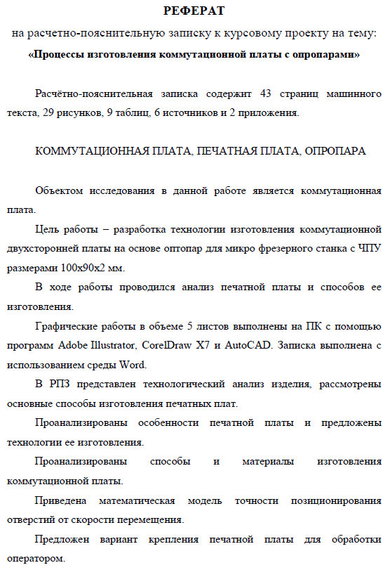 Курсовая работа: Процессы изготовления коммутационной платы с оптопарами