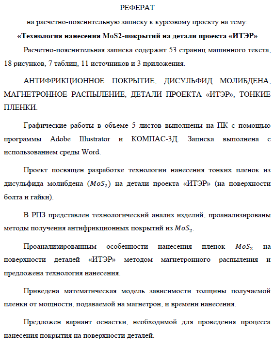 Для студентов МГТУ им. Н.Э.Баумана по предмету Технология и оборудование микро и наноэлектроникиТехнология нанесения MoS2-покрытий на детали проекта ИТЭРТехнология нанесения MoS2-покрытий на детали проекта ИТЭР