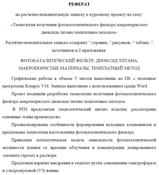 Курсовая работа: Технология получения фотокаталитического фильтра