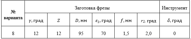 ДЗ 3: Формирование торцевого зуба на режущем инструменте вариант 8