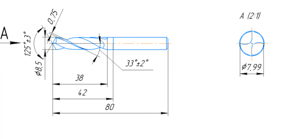 Выполнить рабочий эскиз сверла с размерами, соответствующими заданному варианту
