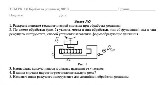 Ответы к контрольной работе: рк №3 ткм резка 5 вар