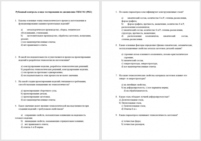 Для студентов МГТУ им. Н.Э.Баумана по предмету Технология конструкционных материалов (ТКМ)Рубежный контроль в виде тестирования по дисциплине ТКМ №1Рубежный контроль в виде тестирования по дисциплине ТКМ №1