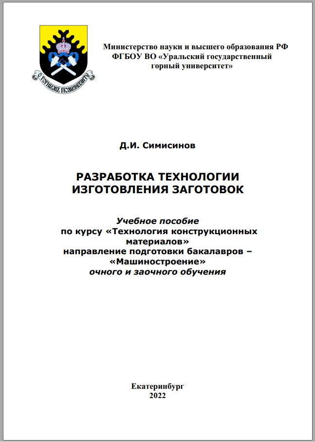 Главная » Учебные материалы » Технология конструкционных материалов (ТКМ) » Книги » УГГУ » Несколько классов/семестров » Разработка технологии изготовления заготовок/ Д.И.Симисинов