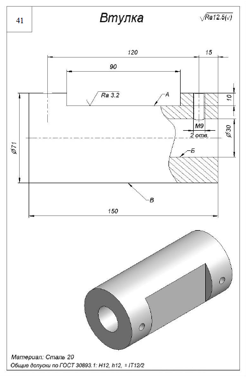 ДЗ 3: Механическая обработка заготовок деталей машин - Втулка вариант 41