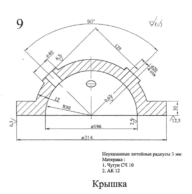 ДЗ 1: Разработка технологии изготовления отливок - Крышка вариант 9