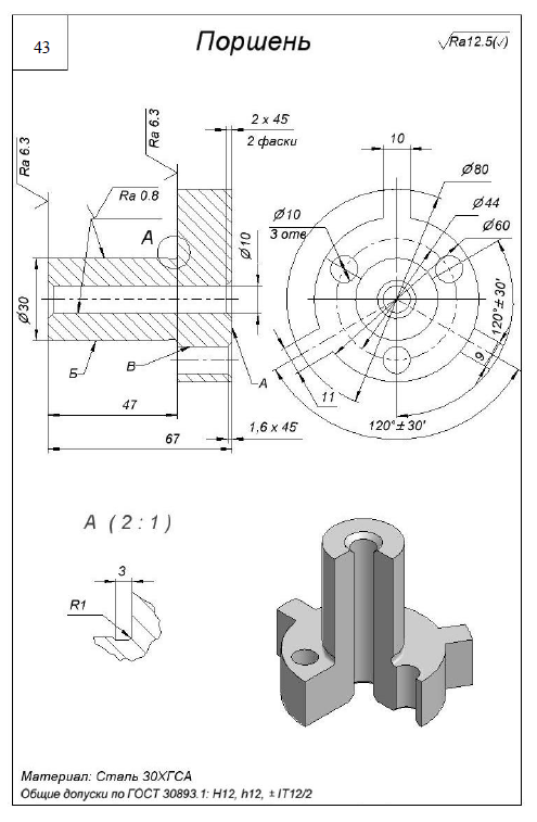 ДЗ 3: Механическая обработка заготовок деталей машин - Поршень вариант 43