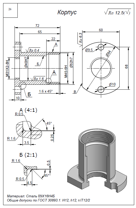 ДЗ 3: Механическая обработка заготовок деталей машин - Корпус вариант 26