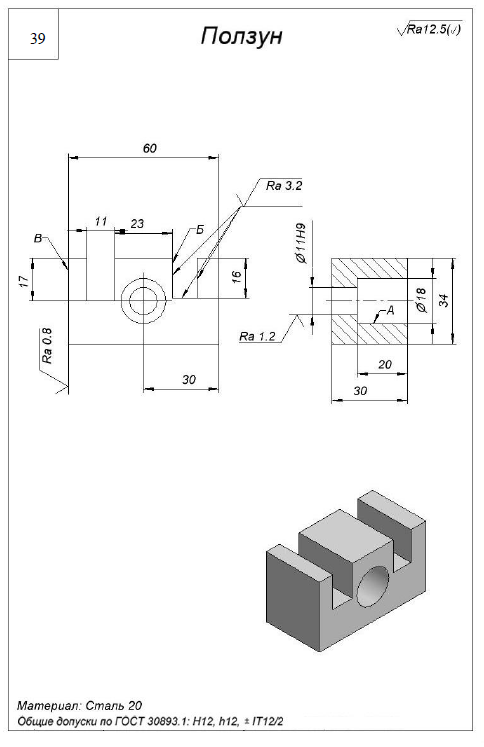 ДЗ 3: Механическая обработка заготовок деталей машин - Ползун вариант 39