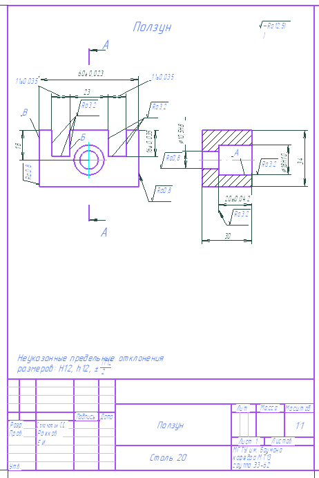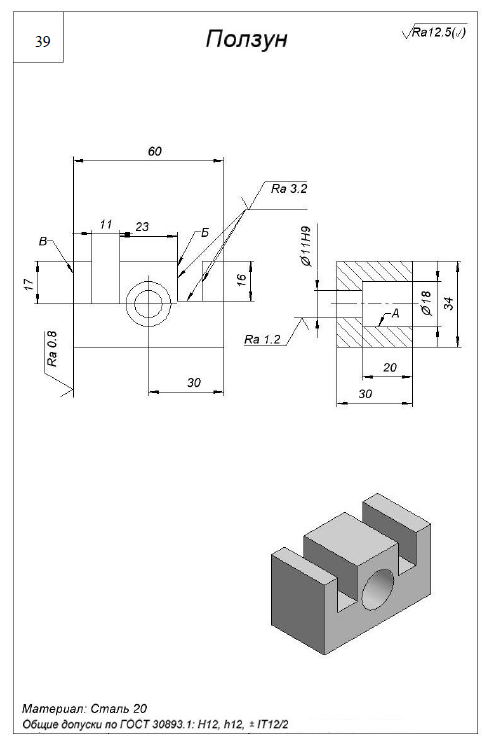 ДЗ 3: Механическая обработка заготовок деталей машин - Ползун вариант 39