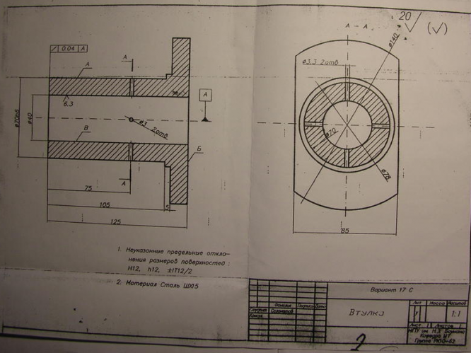 Для студентов МГТУ им. Н.Э.Баумана по предмету Технология конструкционных материалов (ТКМ)Механическая обработка заготовок деталей машин - ВтулкаМеханическая обработка заготовок деталей машин - Втулка