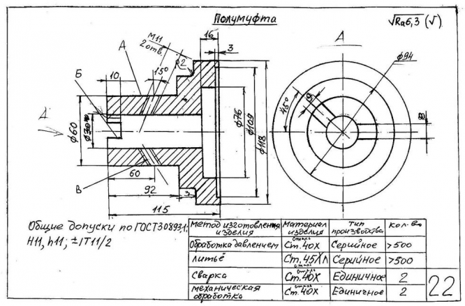 ДЗ 1: Разработка технологии изготовления отливок - Полумуфта вариант 22