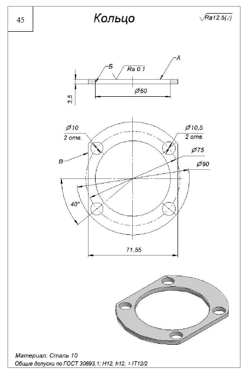 ДЗ 3: Механическая обработка заготовок деталей машин - Кольцо вариант 45