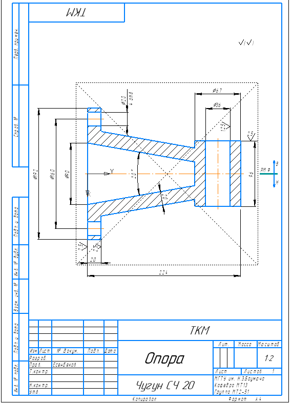Для студентов МГТУ им. Н.Э.Баумана по предмету Технология конструкционных материалов (ТКМ)Разработка технологии изготовления отливок - ОпораРазработка технологии изготовления отливок - Опора