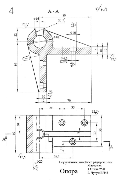 ДЗ 1: Разработка технологии изготовления отливок - Опора вариант 4