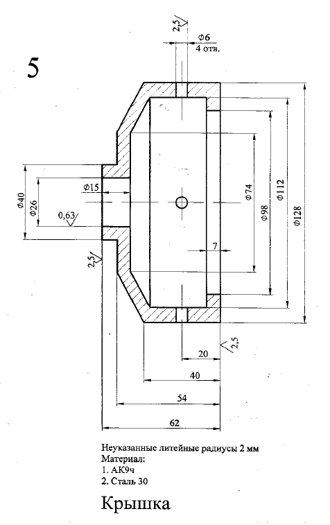 ДЗ 1: Разработка технологии изготовления отливок - Крышка вариант 5