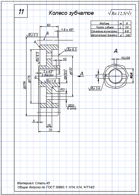 ДЗ 3: Механическая обработка заготовок деталей машин - Колесо зубчатое вариант 11