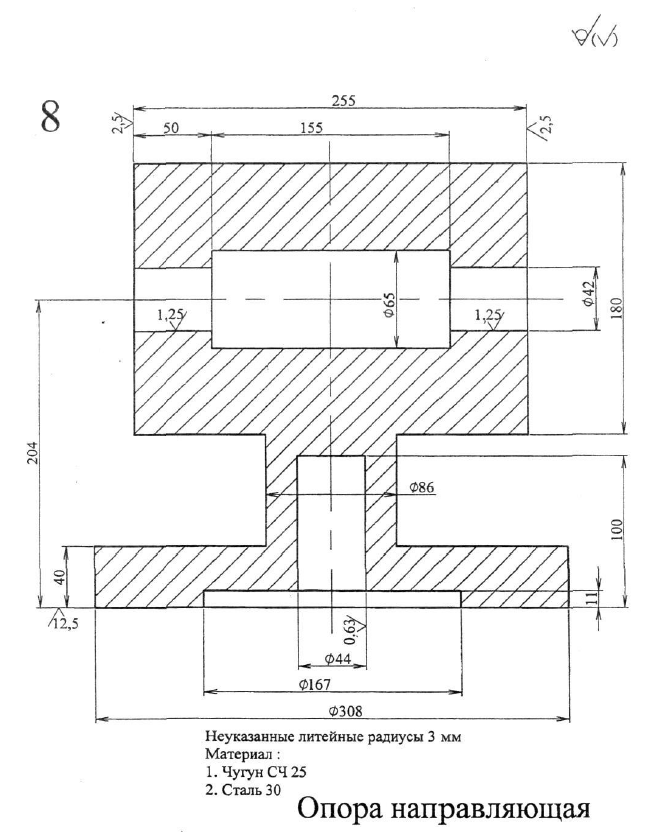 ДЗ 1: Разработка технологии изготовления отливок - Опора направляющая вариант 8