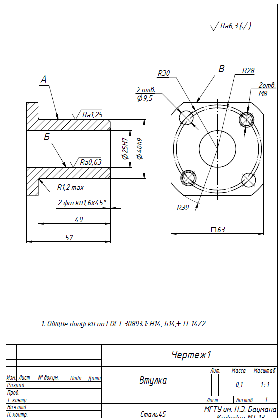 ДЗ 3: Механическая обработка заготовок деталей машин - Втулка вариант 4