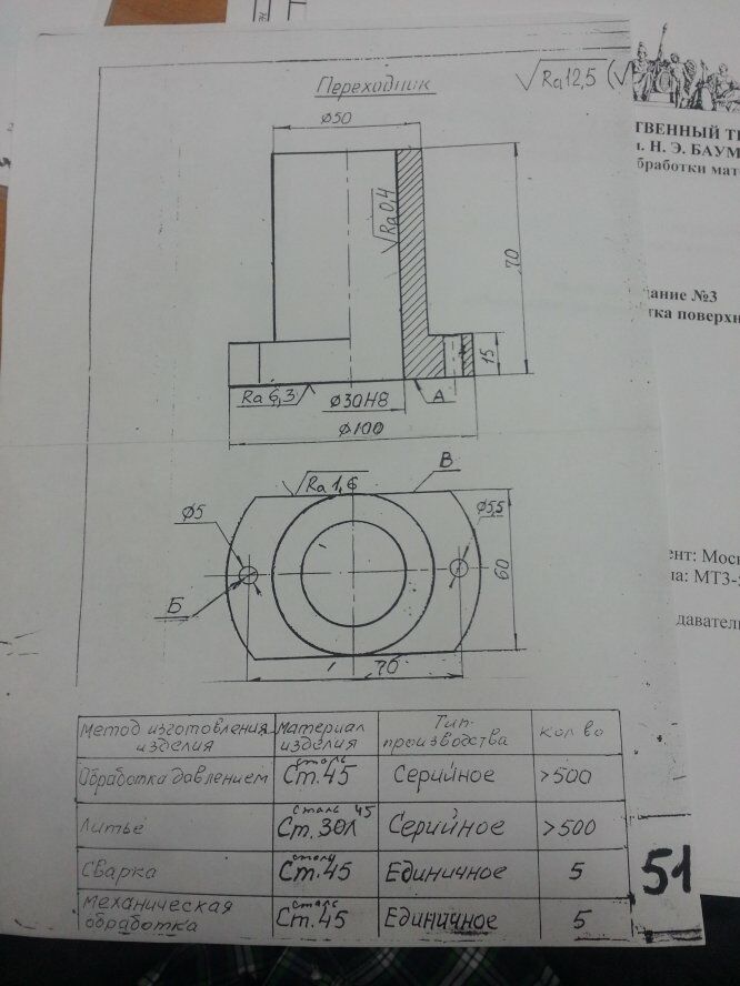 ДЗ 3: Механическая обработка заготовок деталей машин - Переходник вариант 51