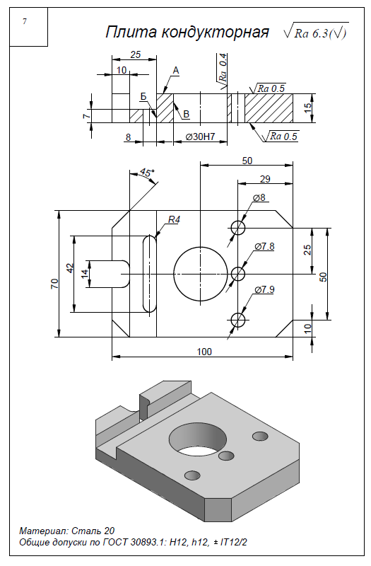 ДЗ 3: Механическая обработка заготовок деталей машин - Плита кондукторная вариант 7, 23