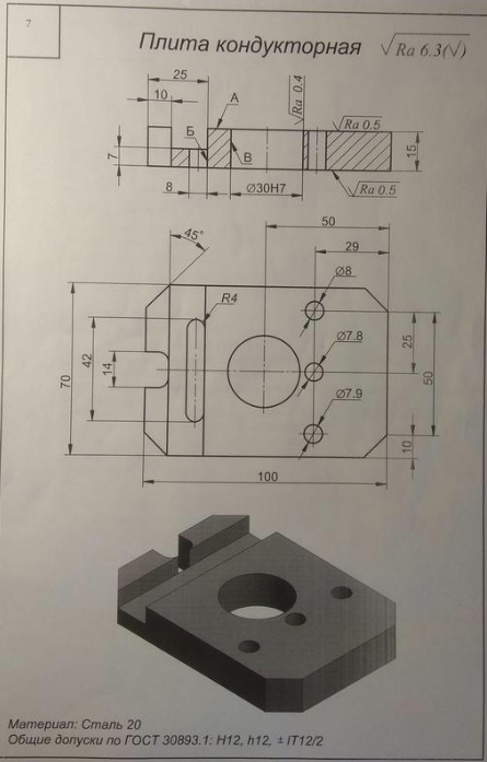 ДЗ 3: Механическая обработка заготовок деталей машин - Плита кондукторная вариант 7, 23